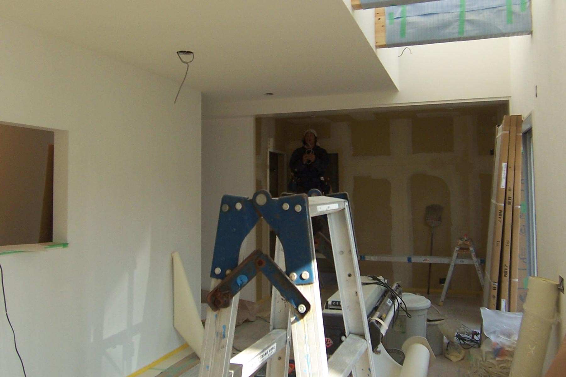 内部工事 2011 1/11 函の家 2011-01-11 現場にてお施主様・工務店と打ち合わせ。壁紙が入って、俄然住宅らしくなってきました。 吹き抜けの上は大きなライブラリ。家族みんなの共有スペース。北側斜面の厳しい敷地条件でしたが、配置を考えたことで十分明るい空間になっていて安心。 函の家