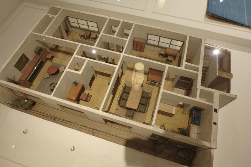 細部まで作りこまれた模型。今ではこれぐらい家具をつくりこんだ模型も珍しくないですが、当時としてはかなり異例のことだと思います(ちなみに壁は木製のようです)。私たちの事務所も、まだまだ設計のきめ細かさが足りないなあと実感しつつ、今後の計画に生かしていければと思います。