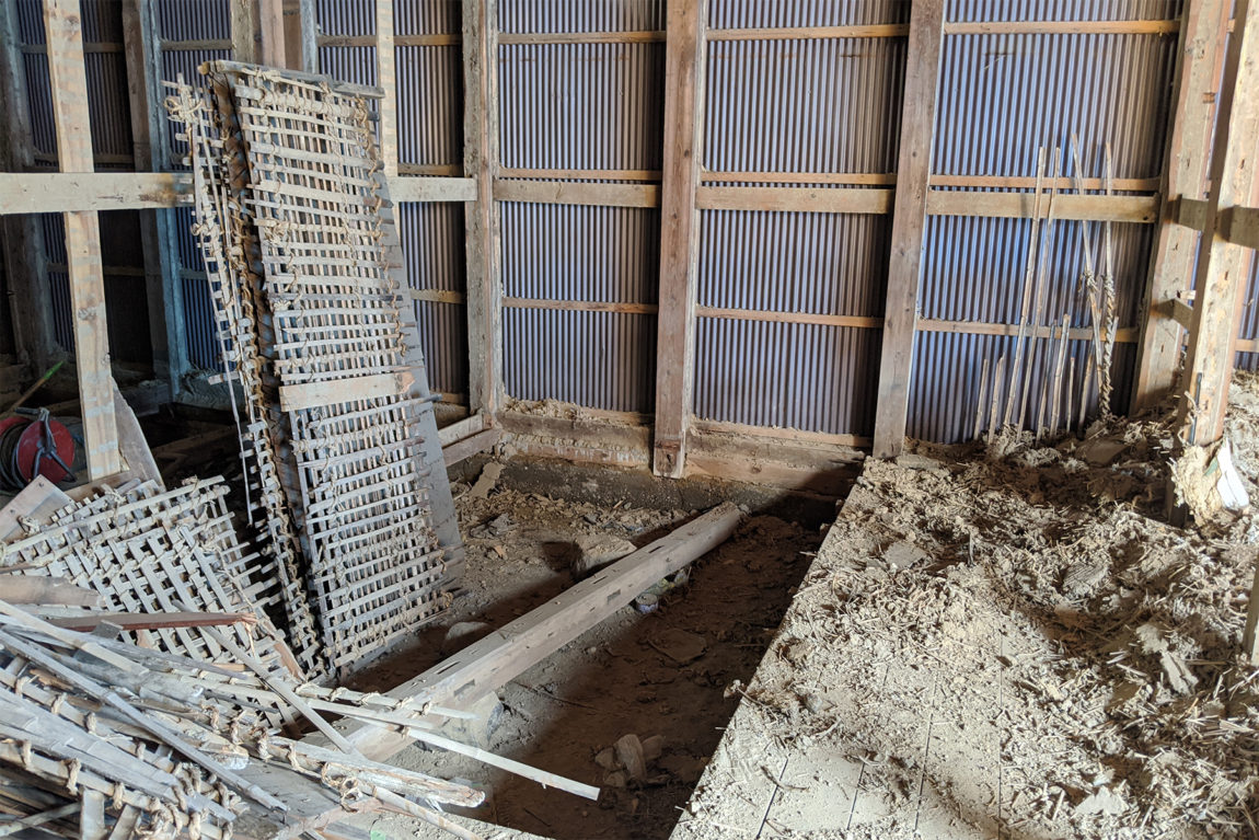 解体工事を行いました 2020 5/23 きたまちの家 2020-05-23 内部の土壁を解体しました。構造体だけの状態も迫力があって格好良いです。 土壁下地材の竹小舞が出てきました。土の搬出が完了したら、隠れていた梁の架かり方や柱の足元の状態などを確認します。 現場の帰りに道路を闊歩する鹿を発見。 きたまちの家 リノベーション 住宅 古民家 奈良 町屋 長屋
