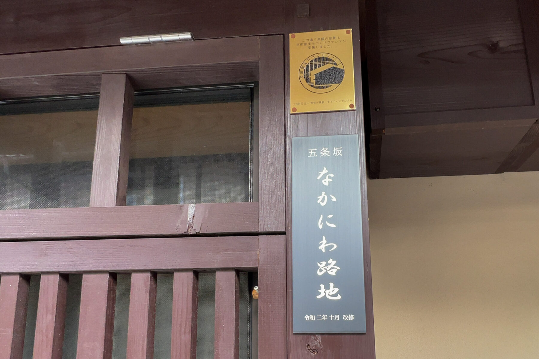 軒下に輝く京町家まちづくりファンドのプレート。たくさんの現役長屋が街区を形成している昭和小路のレア度を再認識しました。頑張らねばなりません。