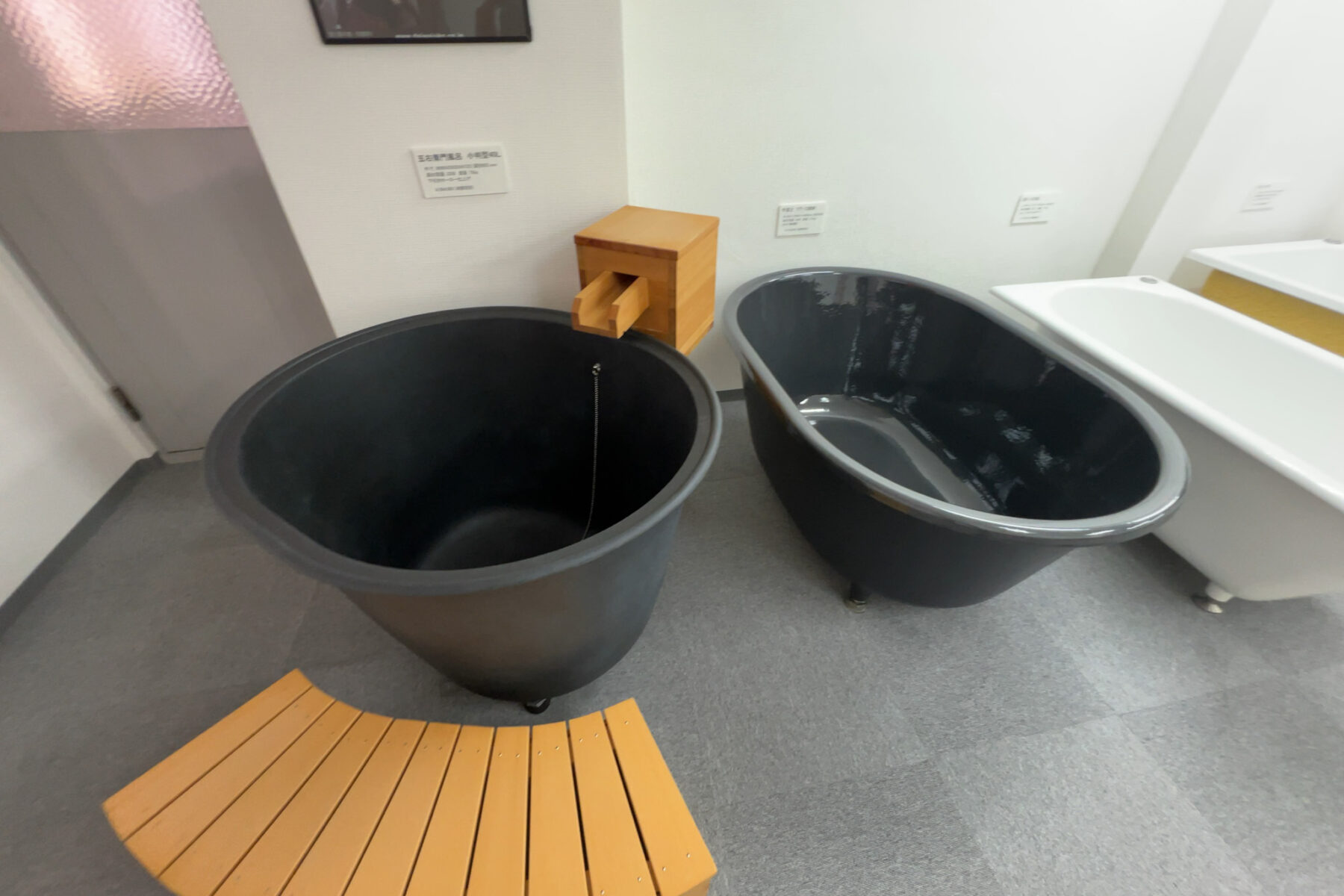 丸い個浴はインバウンド復活で特需状態。五右衛門風呂は、本当に薪で下から沸かす使い方も出来るそうです。最近はもっぱらサウナブームですが、個人的にはこちらの方が好きです。