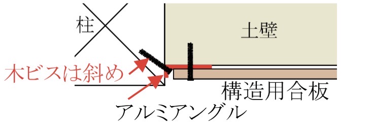 低コスト工法の実践的な様々なラインナップの中でも代表的なものがL型のアルミ金物と構造用合板を用いた壁面の補強です。既存の土壁や床・壁・天井はそのままに、柱に細いL型のアルミ金物を留め、それを受け材にして構造用合板を留める工法です。天井まで合板を貼れない場合や押入・長押がある場合、壁にコンセント穴がある場合など、実際よくある低減条件下でどこまで耐震性を評価出来るのか、様々なパターンでマニアックに実験を重ね、多くの木造建築、特に和室メインの戦後日本家屋に適用しやすい工法となっています。