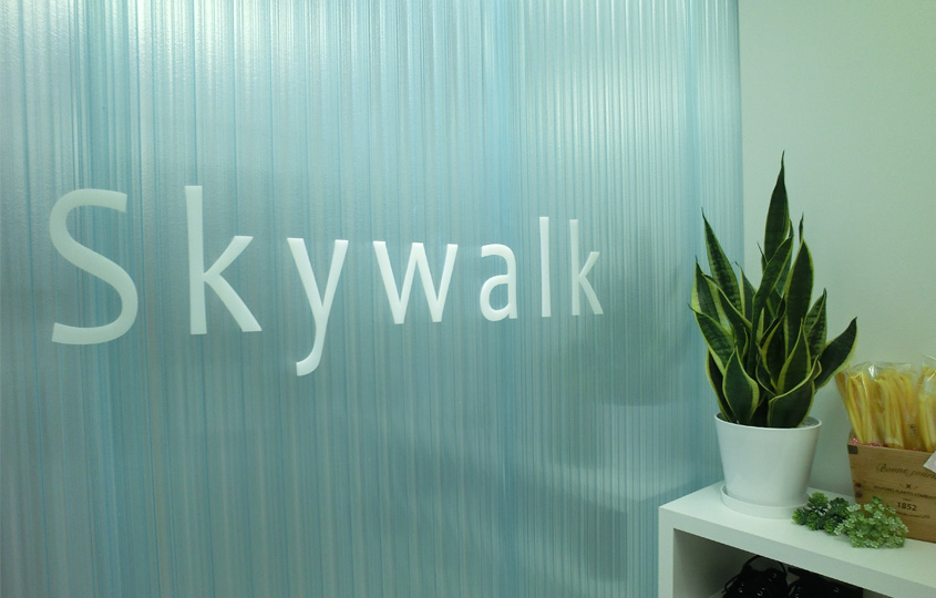 JR三ノ宮駅前にあるピラティスのスタジオです。店名がもつ空を歩く軽やかなイメージ、お施主さまができるだけ自然光を生かした明るい空間をご希望されたこと、衝撃に対して安全な素材である必要性から、3色のポリカーボネイトハニカム製可動パーティションでスタジオやホール、更衣室を柔らかく仕切りました。建具や受付カウンターも同じ材料で製作し、透明感・清潔感のある空間になりました。
